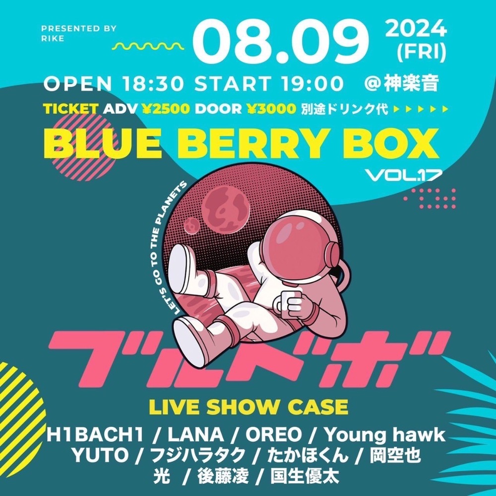 BLUE BERRY BOX VOL.17 SCHEDULE 2024/08/09(金) 神楽音 BLUE BERRY BOX VOL.17 ・08.09(金) ・神楽音 ・OPEN 18:30 START 19:00 CLOSE 23:00 チケット情報 https://t.livepocket.jp/e/bbb_17 URLをコピーする 報告する