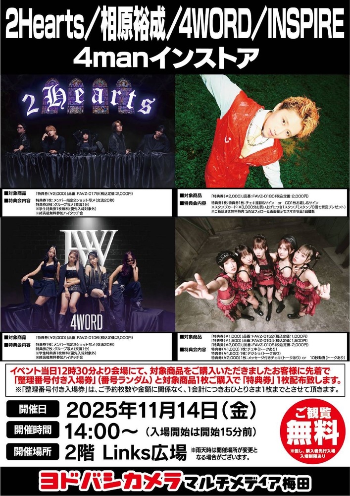 『2Hearts / 相原裕成 / 4WORD / INSPIRE 4manインストア』