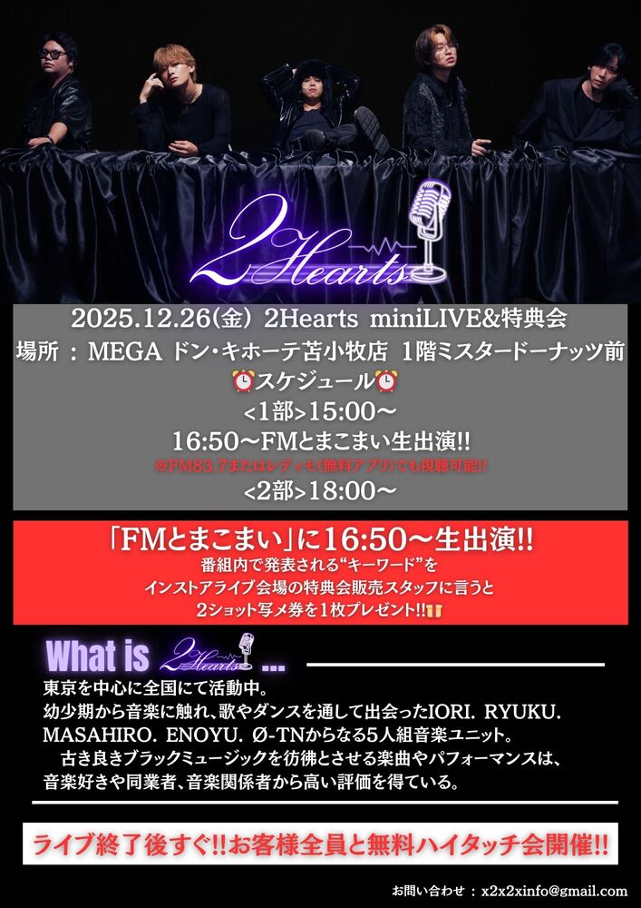 フリーライブ&FMとまこまい生出演 SCHEDULE 2025/12/26(金) MEGA ドンキホーテ苫小牧店 12/26 (fri.)場所 : 苫小牧ドンキホーテ ※観覧フリー!! 時間: (1部)15:00~ (2部)18:00~ URLをコピーする 報告する